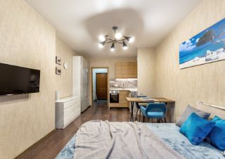 Квартира студия с дизайнерским ремонтом,современной качественной мебелью и бытовой техникой. Есть стиральная машина, плита, микроволновка, холодильник, телевизор, встроенный духовой шкаф(!). В квартире сделано подключение к ТВ и высокоскоростному интернету. Санузел совмещенный, с душевой кабиной. Дополнительно сделан гигиенический душ (!).