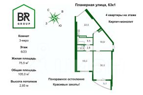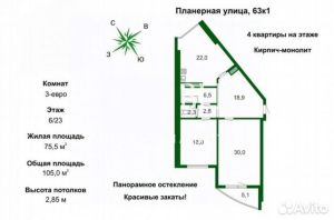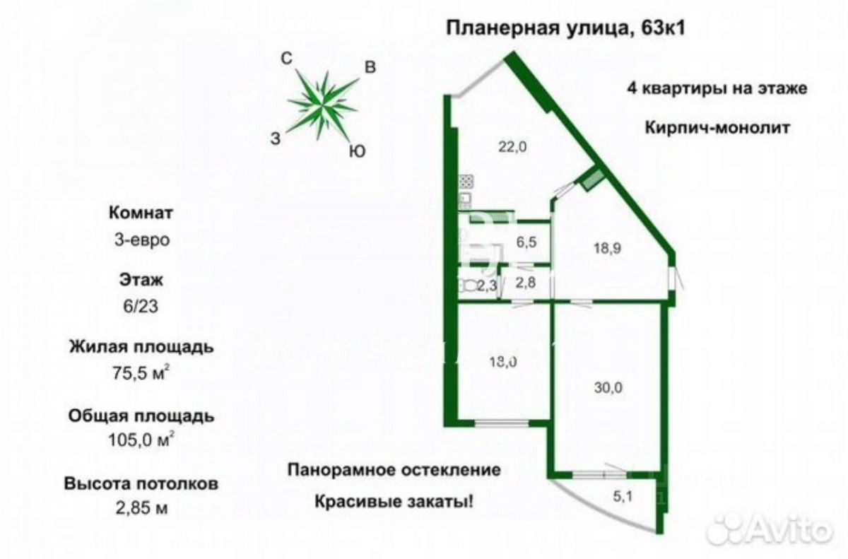 Преимущества квартиры:Просторная 3-евро квартира 105 м2!Свободная планировка, возможность спроектировать планировку по своему дизайну!Большая просторная кухня-гостиная 22 кв. м., мечта любой хозяйки!Просторные жилые комнаты 30 кв. м и 18 кв. м правильной прямоугольной формы, с возможностью организовать гардеробную, комната с гардеробной!Панорамное остекление в пол в Кухне-гостиной и большой комнате!Остекление полностью заменено на теплое!ВИДОВАЯ КВАРТИРА! Из окон открывается красивый вид на шикарные закаты, на Лахта центр, Юнтоловский заказник! Окна на улицу на парковую зону и во двор,Просторная прихожая 18 кв.м. Просторная прихожая это редкость в современных планировках, позволяет организовать пространство удобным для Вас способом с местом для хранения! гардеробной! или даже спальней или зоной отдыха,Просторные санузлы, возможность организовать 2 раздельных санузла!В квартире произведена разводка электрикиВ квартире предусмотрена возможность установки перегородок, дополнительного зонированияквартира продается без отделкиПреимущества дома:Кирпично-монолитный качественный дом 2010 года от хорошего застройщика!НА этаже ВСЕГО 4 КВАРТИРЫ! Это значит будет тихо и чисто!хорошие соседи!КРАСИВЫЙ ДОМ с архитектурной точки зрения!Хорошие лифты пассажирский и грузовой,видеонаблюдение в лифтах и по периметру дома,Удобная транспортная доступность до центра города и в любой район! до метро Комендантский проспект 10 мин на транспортерядом выезд на ЗСД, что позволяет быстро добраться в любую точку города, и быстро выехать за город,Во дворе подземный паркинг, и открытая парковкав пешей доступности: школы, детские сады, пекарни, магазины, автобусные остановки и большой ТЦ "Монпансье". Также в самом доме есть галерея с магазинами,Во дворе детская площадкаРядом парк, прогулочные тропы, река, здесь устраивают пикники, катаются на велосипедах, роликах, зимой на ватрушках и коньках!В районе также отличные парки, 15 минут на машине: парк 300-летия Санкт-Петербурга, ЦПКиО, парк Озеро Долгое, Юнтоловский заказник, Непосредственно Рядом с домом отличное место для отдыха и прогулок!ДОКУМЕНТЫ:В Собственности более 5 лет, покупали у ЗастройщикаБез обременений, Мат кап не использовался, без ипотекиникто не прописан1 взрослый собственникготовность к сделкевся сумма в договореБезопасная сделка в сопровождении