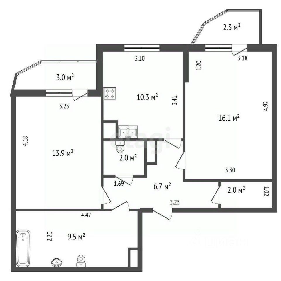 Просторная 2-комнатная квартира 60.5 м² в Парголово | 2 балкона, 2 санузла