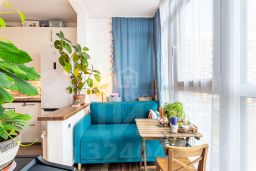 - Балкон в данной квартире разделен на несколько зон - рабочий кабинет, музыкальная зона дочери и уютный уголок для отдыха.