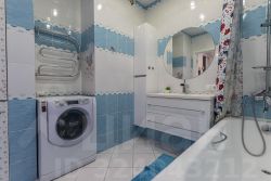Санузел раздельный - в ванной комнате установлена полноценная ванна, стиральная машина элегантно вписалась в нишу, оставив больше свободного пространства, шкаф и комод для хранения банных принадлежностей; в туалете установлена инсталляция, гигиенический душ, водогрей на случай отключения горячей воды и рукомойник с зеркалом и шкафчиком.