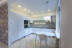 Большая кухня-гостиная станет точкой притяжения для всех членов семьи, здесь имеется кухонный гарнитур со встроенной бытовой техникой (большой холодильник на две секции, широкая посудомоечная машина, духовой шкаф, СВЧ-печь, варочная панель, вытяжка), большое количество мест для хранения кухонных принадлежностей, а над рабочей зоной установлено освещение, все это оценит даже самая взыскательная хозяйка;