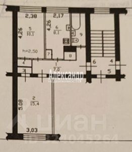 Общая площадь - 46,9 кв.м, комнаты 15,4 и 10,1 кв.м, на 2 стороны (распашонка)