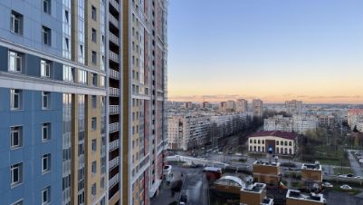 Квартира расположена на 14-м этаже 22-этажного дома. На этаже всего пять квартир. Площадка с квартирами очень просторная и широкая.