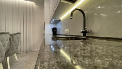 Общая площадь квартиры 56,5 м2 (без учета лоджий), комната 16,5 м2, кухня-гостиная 26 м2, прихожая 7 м2, две застекленные лоджии, санузел совмещенный и просторный 7 м2, потолки 2,8 м. В спальне просторная и функциональная гардеробная, что позволяет не устанавливать шкафы и оставляет визуальный простор в квартире. Уcтановлена качественная входная металлическая дверь с фурнитурой. Выполнен качественный ремонт, разводка отопления и электроснабжения. В квартире остается вся мебель и техника.