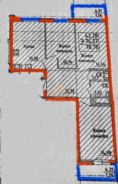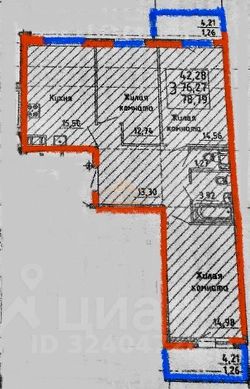 Общая площадь квартиры составляет 75.1 кв. м. плюс два балкона по 4 метра каждый. Очень просторная кухня - 15.5 кв. м. имеет зону столовой и зону гостиной. Правильной формы комнаты за счет высоких потолков - 3м., хорошо освещены. Окна выходят на две стороны: на улицу и во двор.