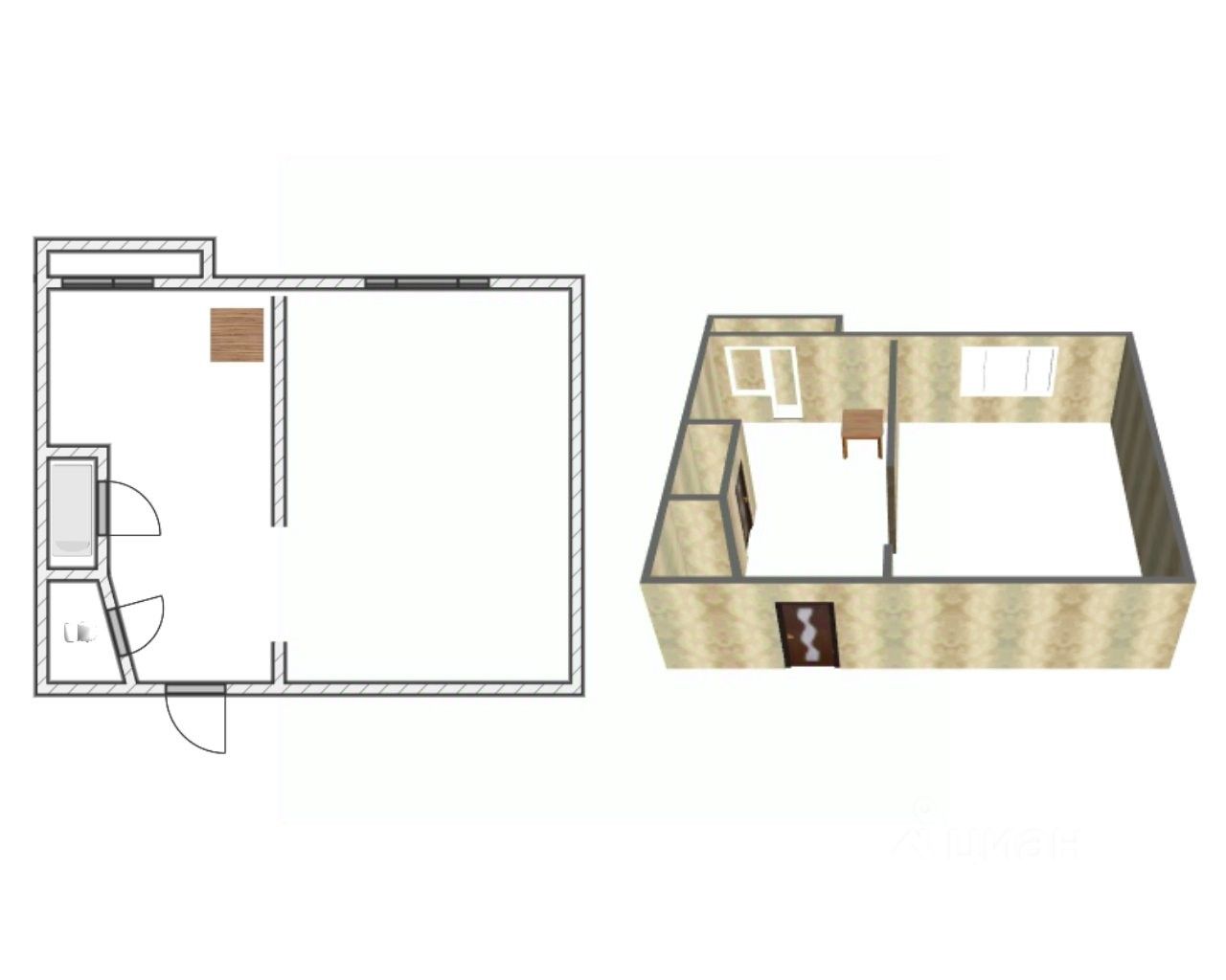 *Площадь: 33,3 м² (жилая — 17 м², кухня — 5,8 м²)