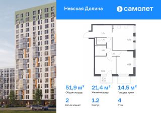 Строим кварталы для жизни с заботой о будущем. Предлагается 2-комнатная квартира комфорт-класса 51,91 кв.м в корпусе 1.2 на 4 этаже, в ЖК "Невская Долина"