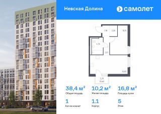Строим кварталы для жизни с заботой о будущем. Предлагается 1-комнатная квартира комфорт-класса 38,36 кв.м в корпусе 1.1 на 5 этаже, в ЖК "Невская Долина"