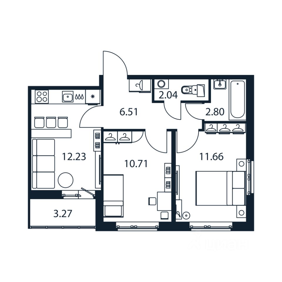 Прямая продажа от застройщика! Готовая Евро-трёшка 44.6 кв.м с кухней 12.23 кв.м с чистовой отделкой на 1 этаже в сданном ЖК "Полис Лаврики".