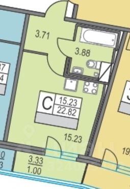 Квартира без ремонта, поэтому у вас есть возможность оформить интерьер по своему вкусу. Комната 15.3 кв. м, широкий балкон, санузел совмещенный. Из окон открывается вид во двор, на юго-запад, в квартире тихо и светло.