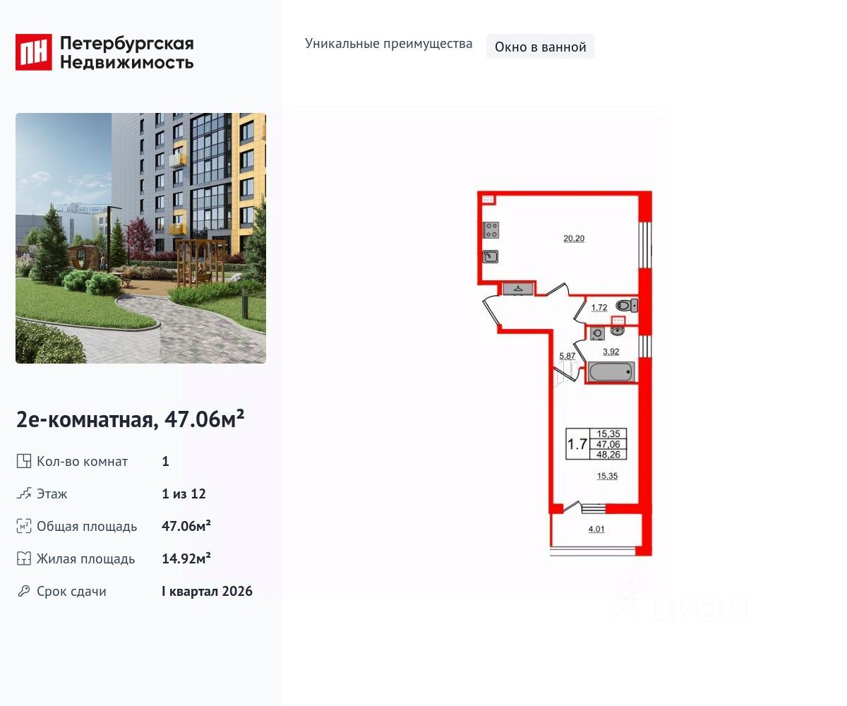 Продается просторная 1-комнатная квартира от застройщика в жилом комплексе "Прайм Приморский" в динамичном Приморском районе.