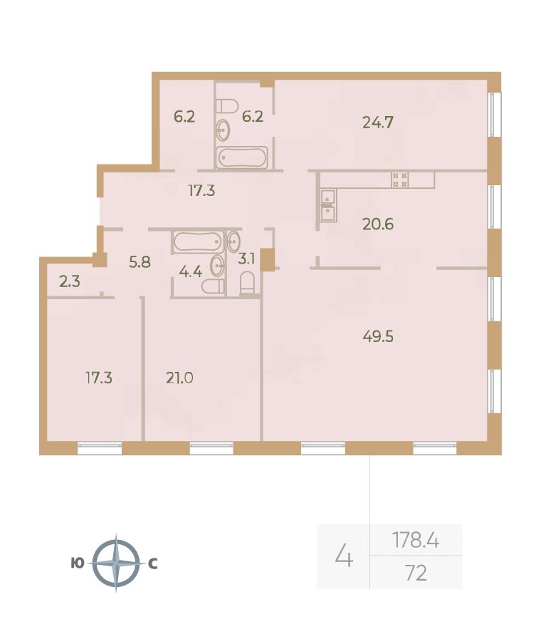 Продаётся 4-комнатная квартира в ЖК "NEVA HAUS" на 1 этаже. Общая площадь составляет 178.40 кв. м. Квартира без отделки. Жилой комплекс "NEVA HAUS" располагается по адресу Санкт-Петербург, Петроградский.