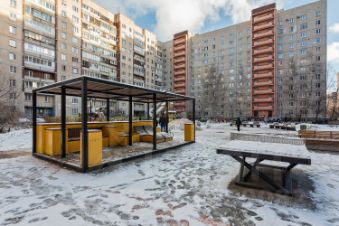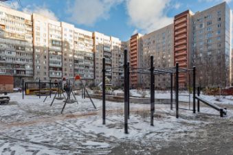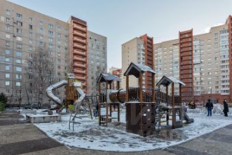 Территория дома закрыта от посторонних, есть свои детская и спортивная площадки, парковка.