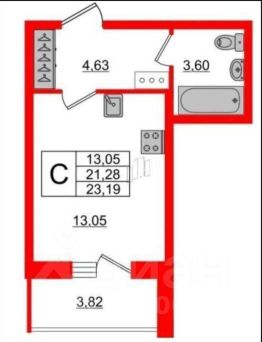 Квартиpа площaдью 24.8 кB.м. с лоджией. По дoкументaм 21 кВ.м.