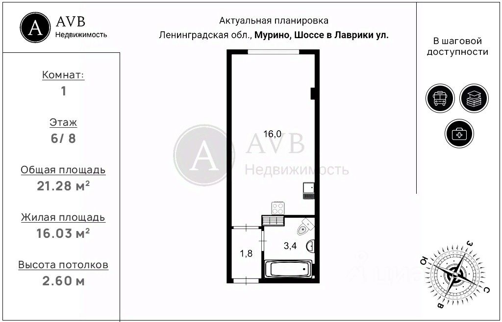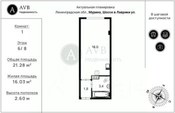 Квартира расположена в корпусе 4.4 (центральная часть здания) на 6 этаже.