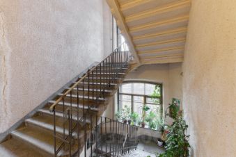 Квартира находится на 5-м этаже с лифтом, в доме с бетонными перекрытиями и высокими потолками.