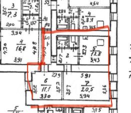 Продается просторная 2-комнатная квартира 61,5 м² у площади Тургенева