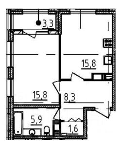 Общая площадь квартиры 47,3 кв.м., с учетом лоджии 49,8 кв.м.
