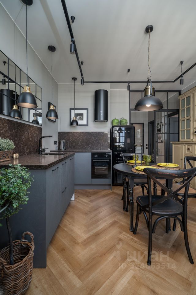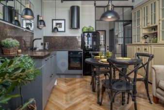 Просторная кухня-гостиная 16 метров с удобным, эргономичным зонированием.