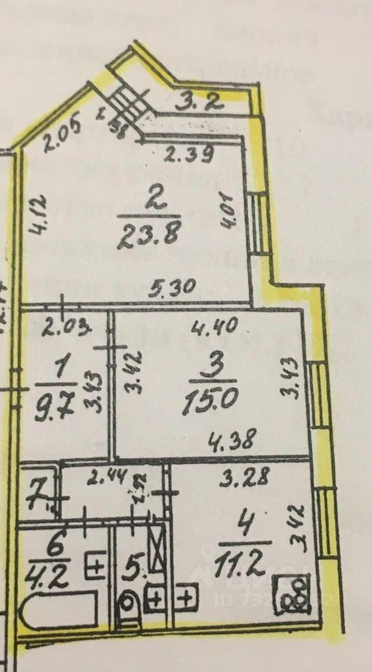 Арт. 124846257 Просторная светлая двухкомнатная квартира в кирпичном доме