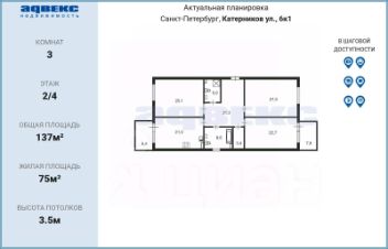 Потолки 3,5 метра, создающие пространство и обьем квартиры.