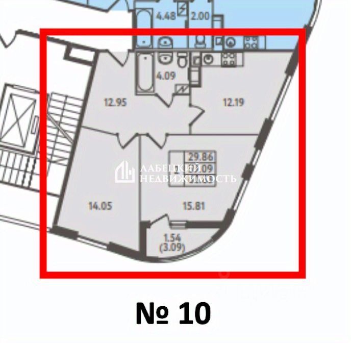 В квартире БОЛЬШИЕ и ИЗОЛИРОВАННЫЕ комнаты площадью 12.19 и 14.05м² одна из которых имеет выход на лоджию 3.09м².