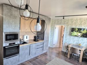 • Удобная планировка: 2 комнаты (14 м² и 10 м²) + большая кухня-гостиная (16 м²).
