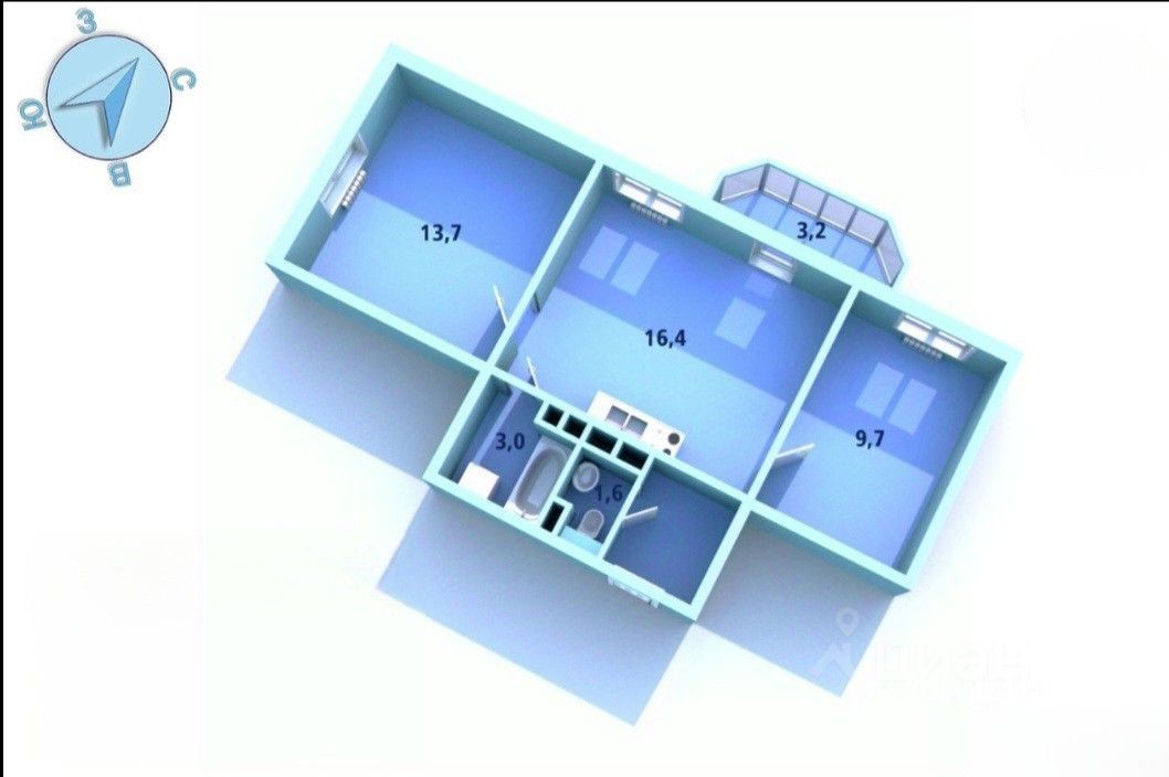 • Общая площадь 48 кв.м + балкон 3,2 кв.м.