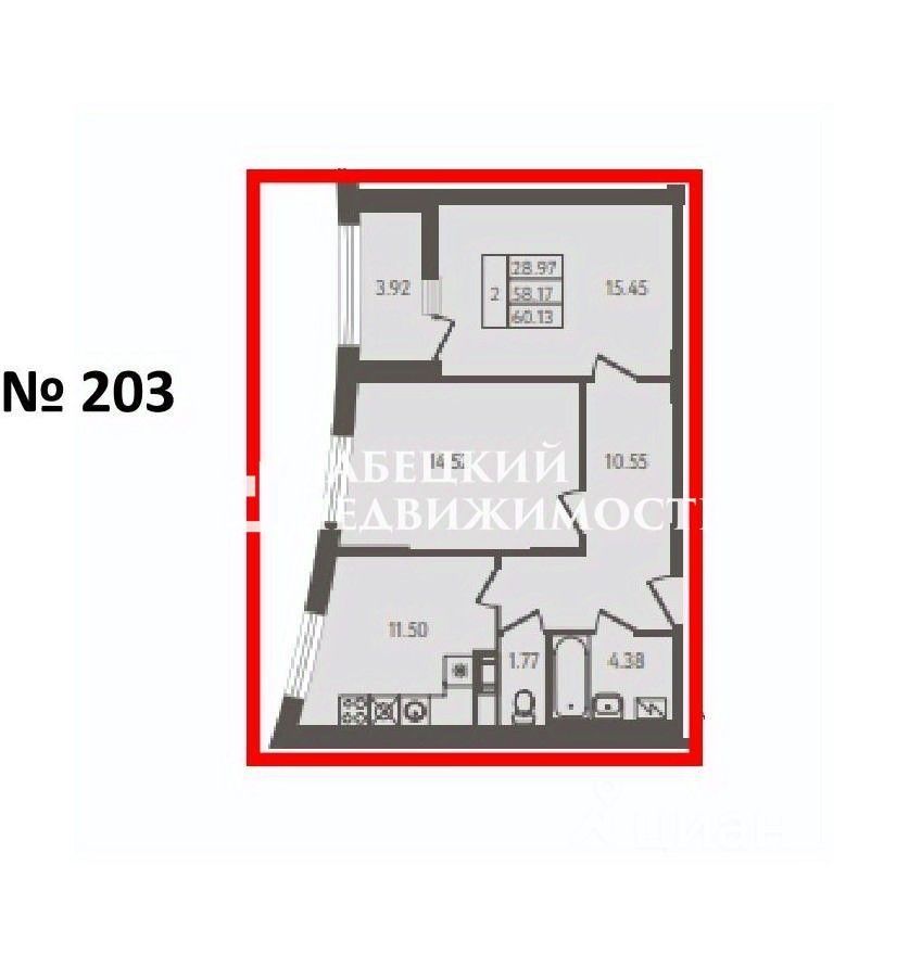 ПРОСТОРНАЯ, СВЕТЛАЯ двухкомнатная квартира общей площадью 60.13м² с действительно КОМФОРТНОЙ планировкой и уютной лоджией с видом во двор.