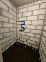 Высокий первый этаж. Без отделки. Очень удачная планировка — без лишних метров, много мест для хранения, есть ниша под шкаф в коридоре. Раздельный санузел. Большая застекленная лоджия.