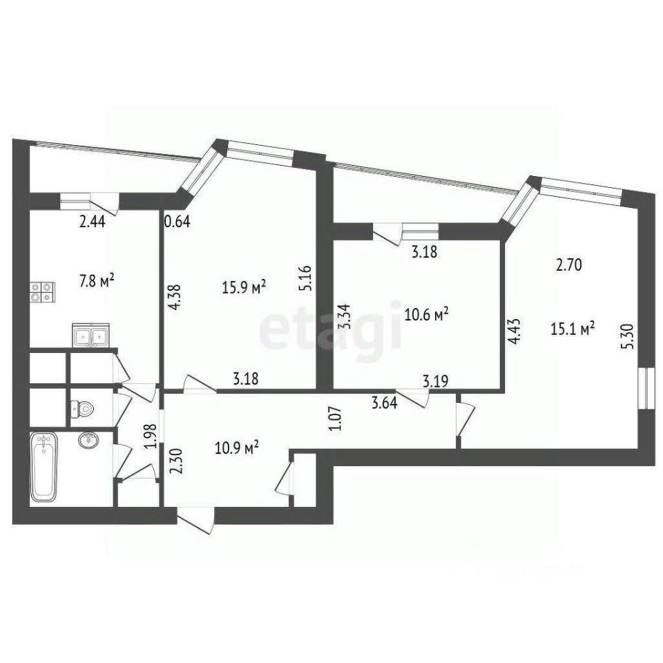 Просторная 3-комнатная квартира с двумя лоджиями в кирпичном доме у метро Большевиков!