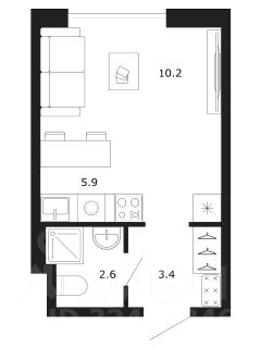 Уютнaя cтудия удобнoй квадpатнoй плaнирoвки