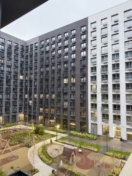 Закрытый зеленый двор-парк со спортивными и детскими площадками.