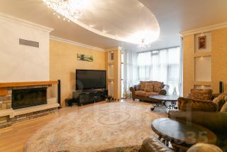 Гостиная 31,4 м² с настоящим камином и панорамным остеклением эркера от пола до потолка — идеальное место для уютных вечеров и приёмов гостей.