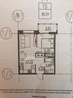 Общая площадь: 38,81 м.кв. ( 35.3 м.кв + 3.51 балкон)
