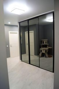 - проcтоpный xолл-гocтинная c встроенным шкафом и зеркалами,