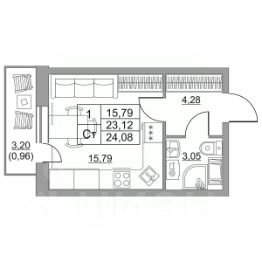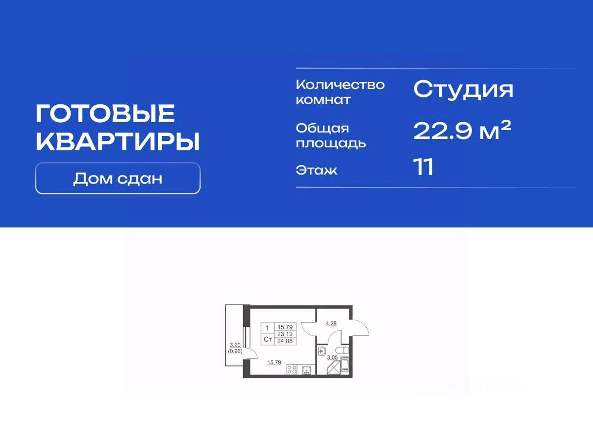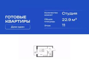 Продается квартира студия в сданном жилом комплексе на 11 этаже одинадцатиэтажного дома. Общая площадь 22.90 кв. м. чистовая отделка от застройщика