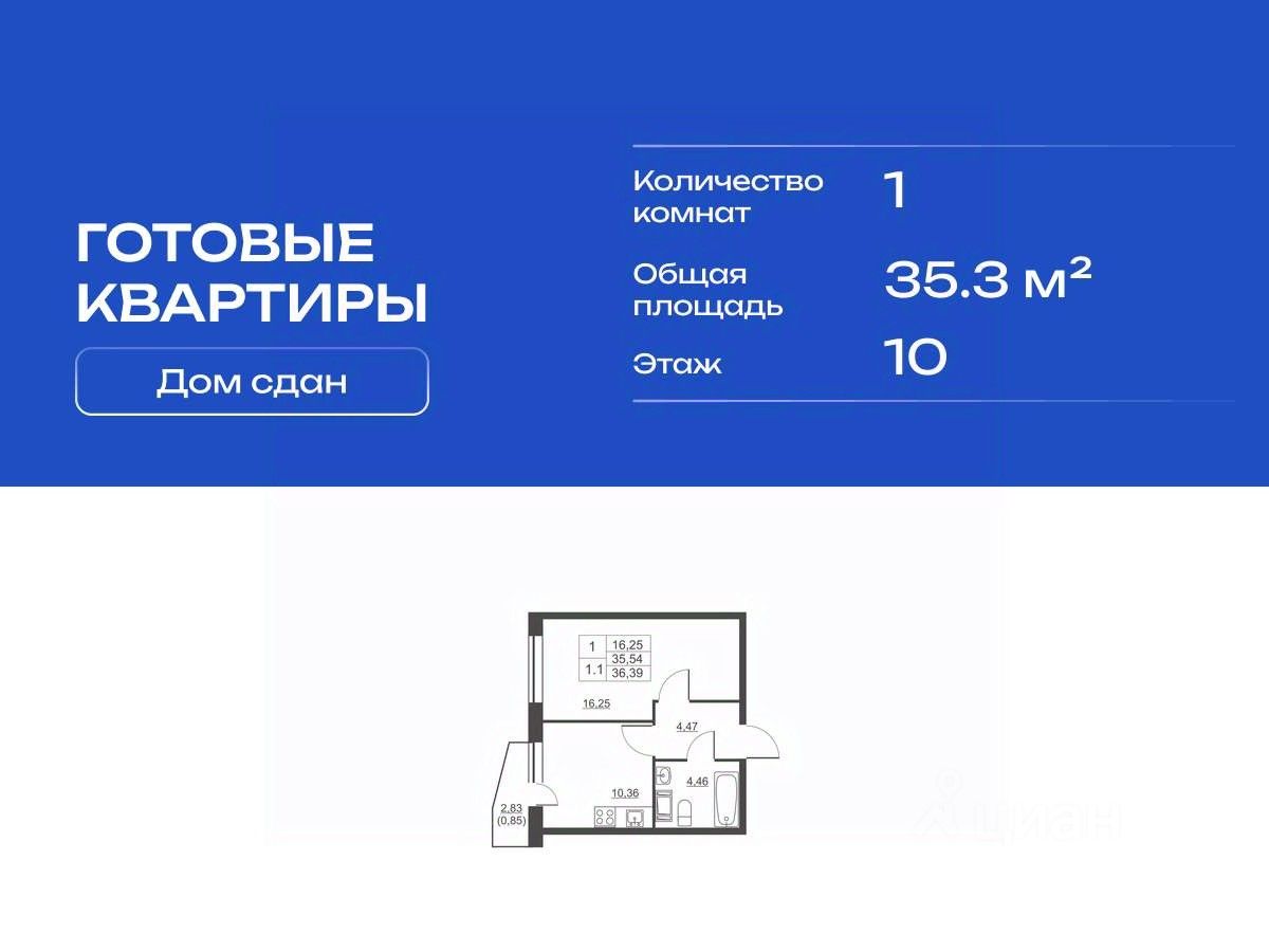 Продается однокомнатная квартира в сданном жилом комплексе на 10 этаже одинадцатиэтажного дома. Общая площадь 35.30 кв. м. чистовая отделка от застройщика