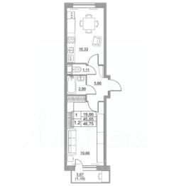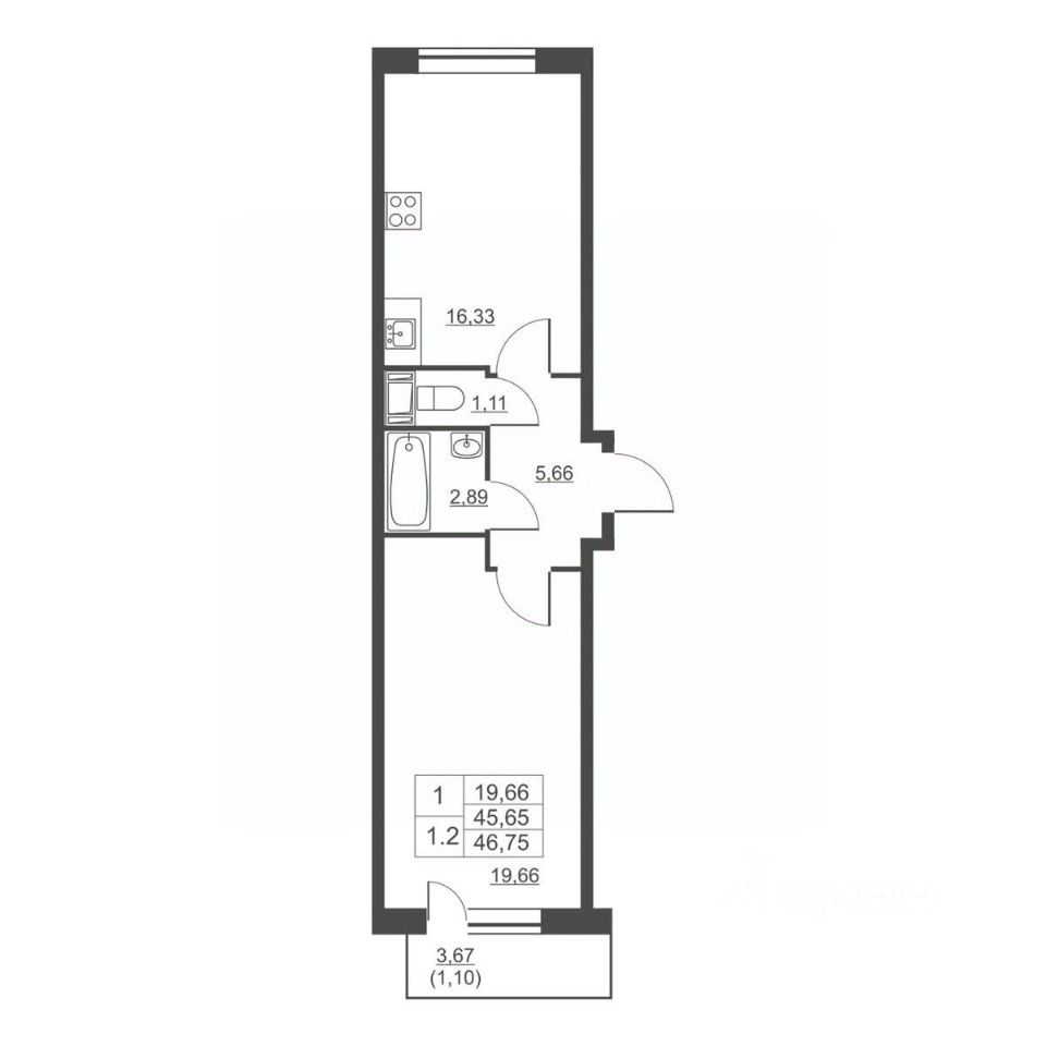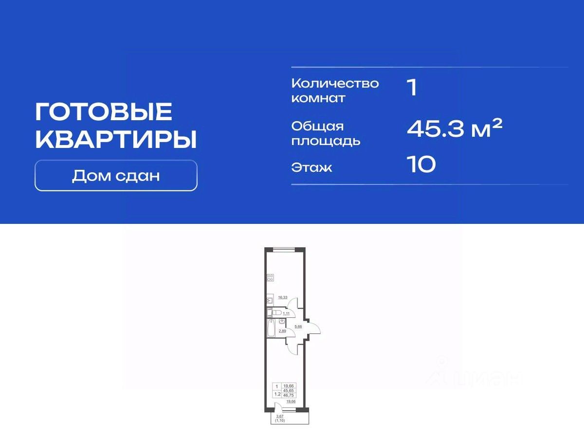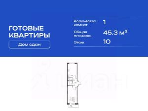 Продается однокомнатная квартира в сданном жилом комплексе на 10 этаже одинадцатиэтажного дома. Общая площадь 45.30 кв. м. чистовая отделка от застройщика