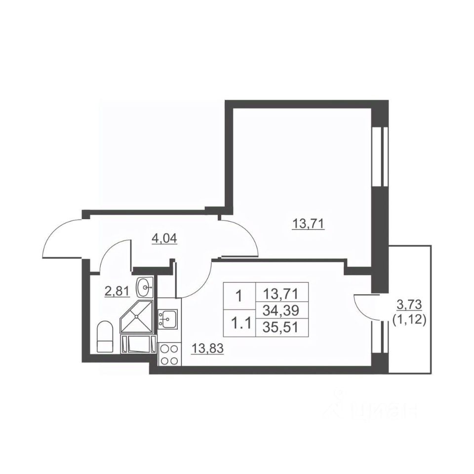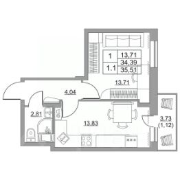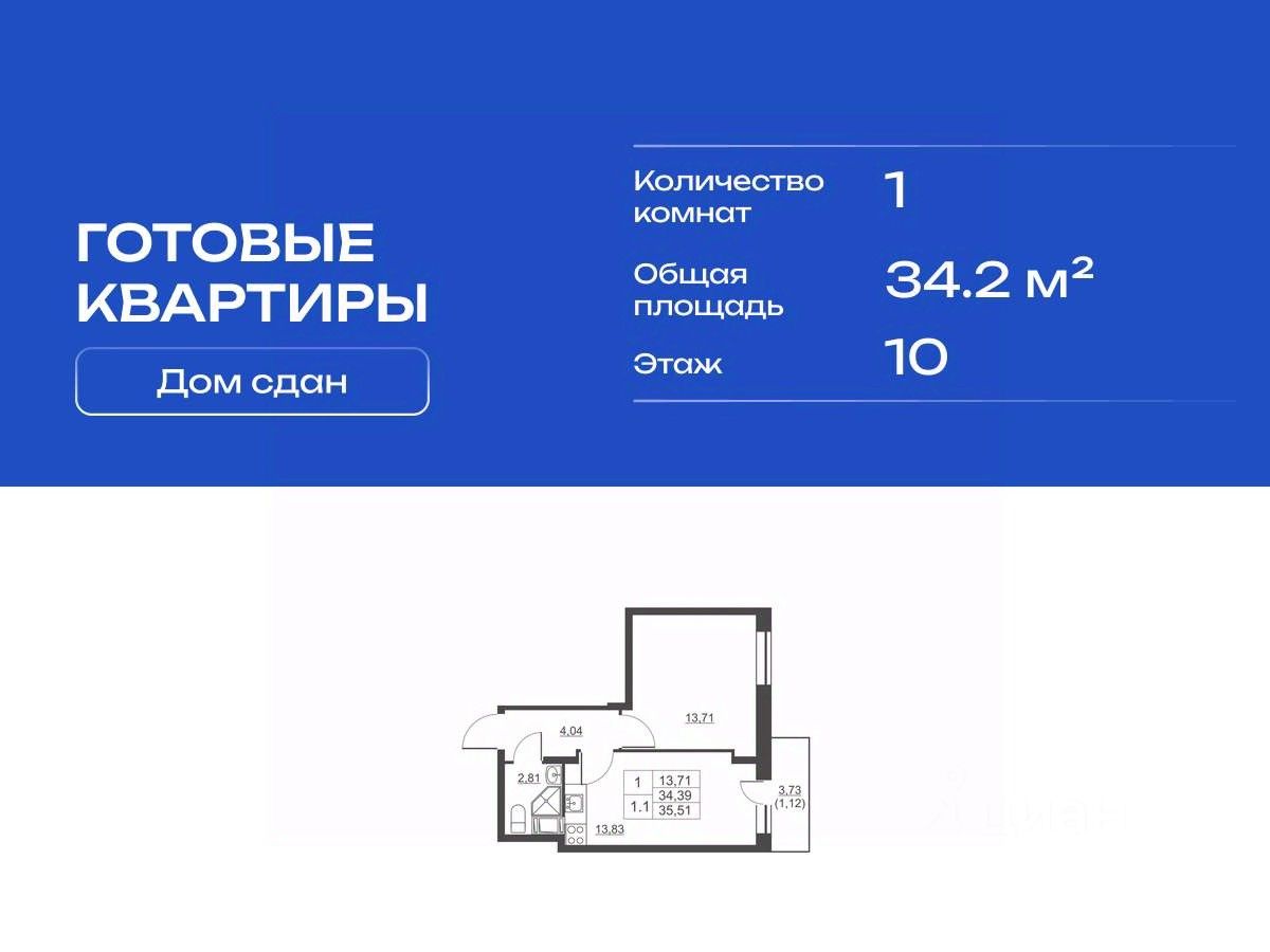 Продается однокомнатная квартира в сданном жилом комплексе на 10 этаже одинадцатиэтажного дома. Общая площадь 34.20 кв. м. чистовая отделка от застройщика