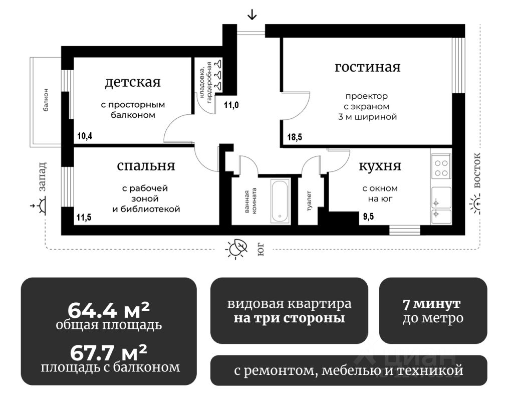 Вся мебель, техника топовых брендов, а также проектор с экраном — остаются.