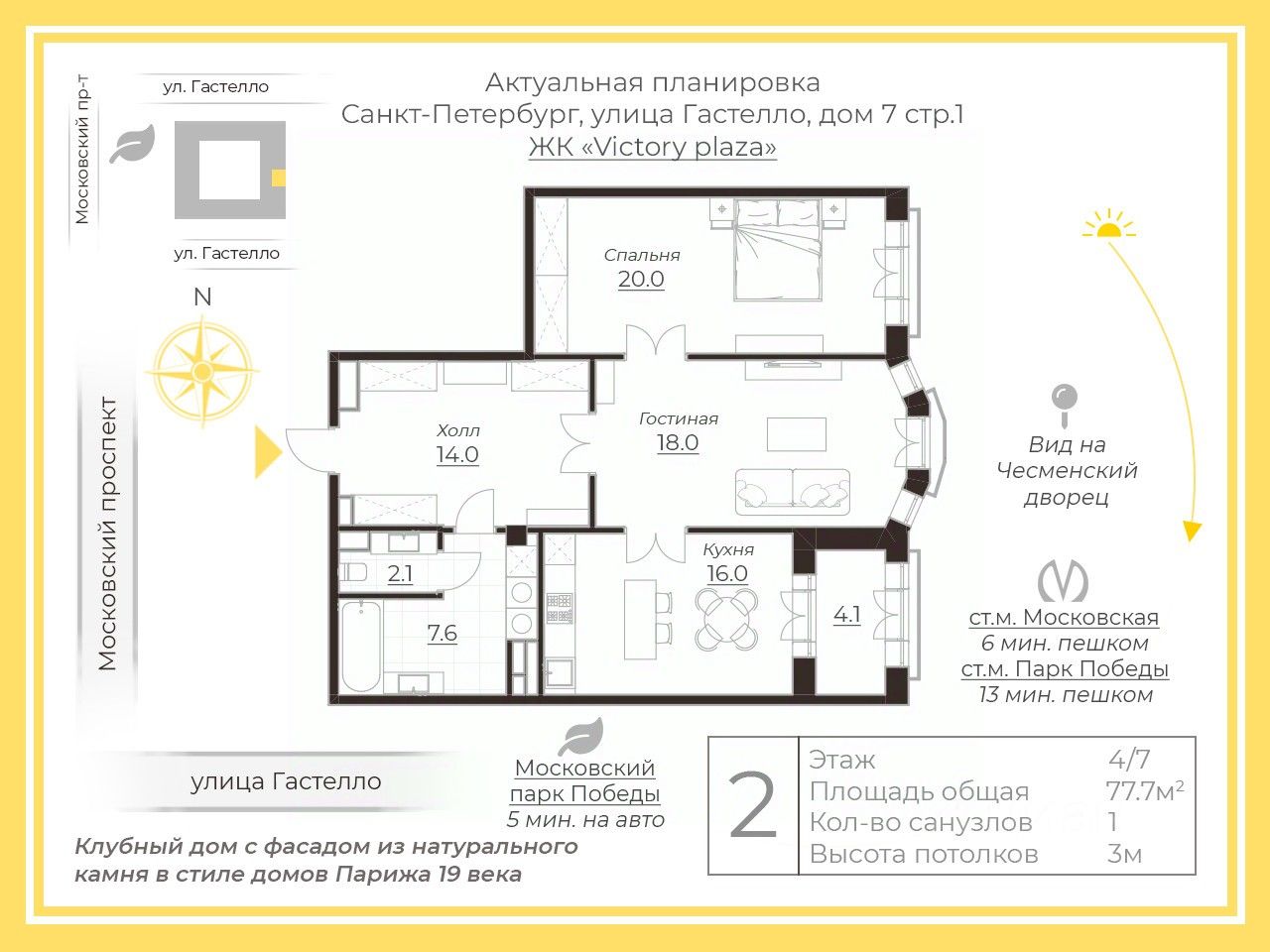 -Редкое планировочное решение для этого дома сочетает в себе панорамное остекление и французские балконы, которые обеспечивают превосходную вентиляцию и инсоляцию открывая вид на Чесменский дворец - живой пейзаж Петербурга.