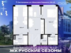 Ищете светлую, просторную квартиру в курортной зоне у Финского залива? Обратите внимание на этот вариант в ЖК Русские сезоны — с отделкой премиум-уровня, двумя мастер-спальнями и постирочной.