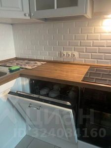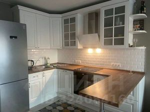 Просторная кухня оборудована всей необходимой мебелью и встроенной техникой: варочной поверхностью, духовым шкафом, посудомойкой.