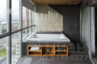 И, конечно, главной особенностью этой квартиры является роскошное джакузи с подсветкой и захватывающим видом на Смольный собор и панораму города.