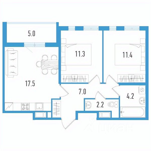 Продаётся 2-комнатная квартира в сданном доме (Старорусский пр-т, 3к2 (Дом 1)), срок сдачи: II-кв. 2025, общей площадью 56.1 кв.м., на 8 этаже.