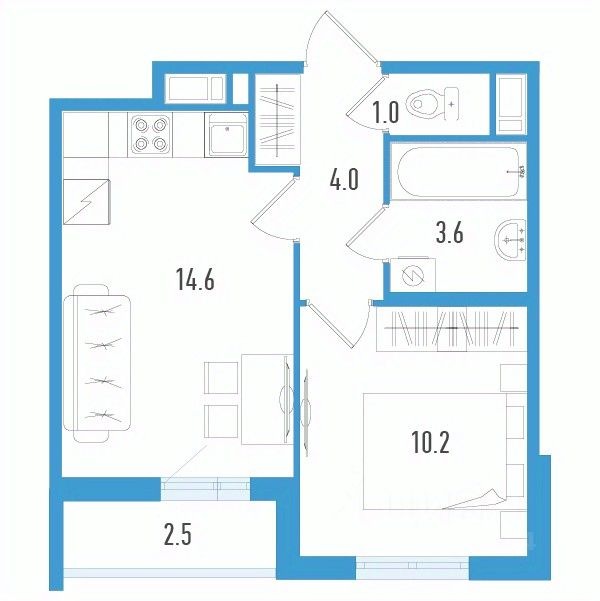 Продаётся 1-комнатная квартира в сданном доме (Старорусский пр-т, 3к2 (Дом 1)), срок сдачи: II-кв. 2025, общей площадью 34.7 кв.м., на 8 этаже.