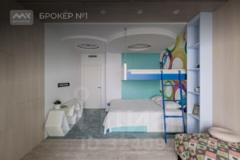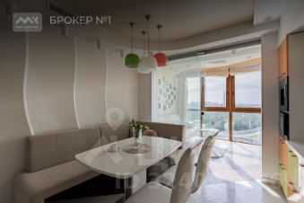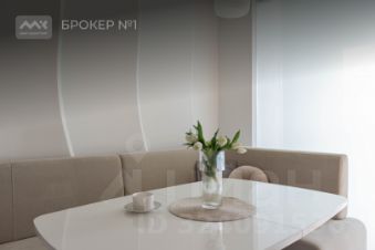 Гостиная 49 м2, 2 просторные спальни, 2 санузла, кухня с лоджией и зоной отдыха, зонированной стеклянной перегородкой с матированием стекла нажатием кнопки-при этом зона отдыха становится приватной.