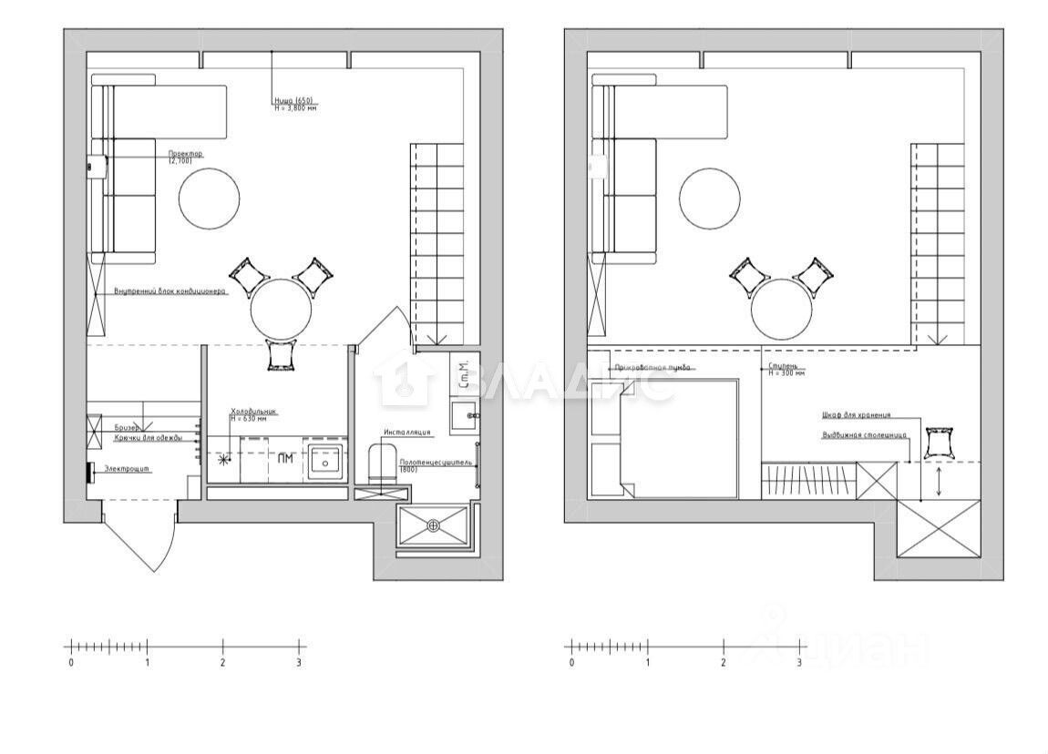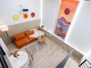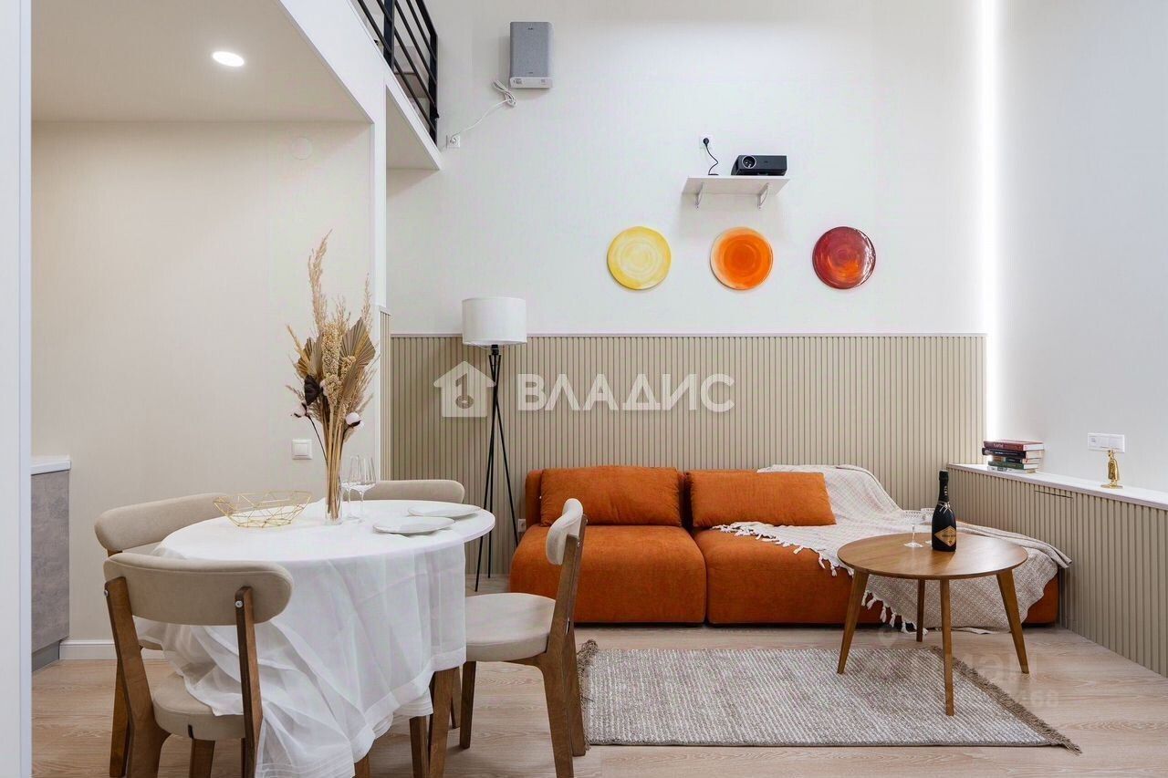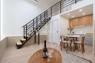 • Удобное зонирование на 5 отдельных зон: прихожая, кухня, санузел, гостиная с проектором и диваном, рабочая зона + спальня на втором уровне.